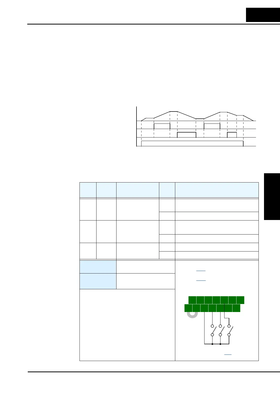 In the graph below, the [UP] and [DWN] terminals activate while the Run command remains