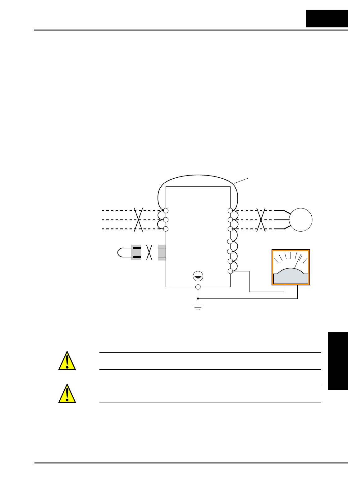 CAUTION: Never test the withstand voltage (HIPOT) on the inverter. The inverter has a surge