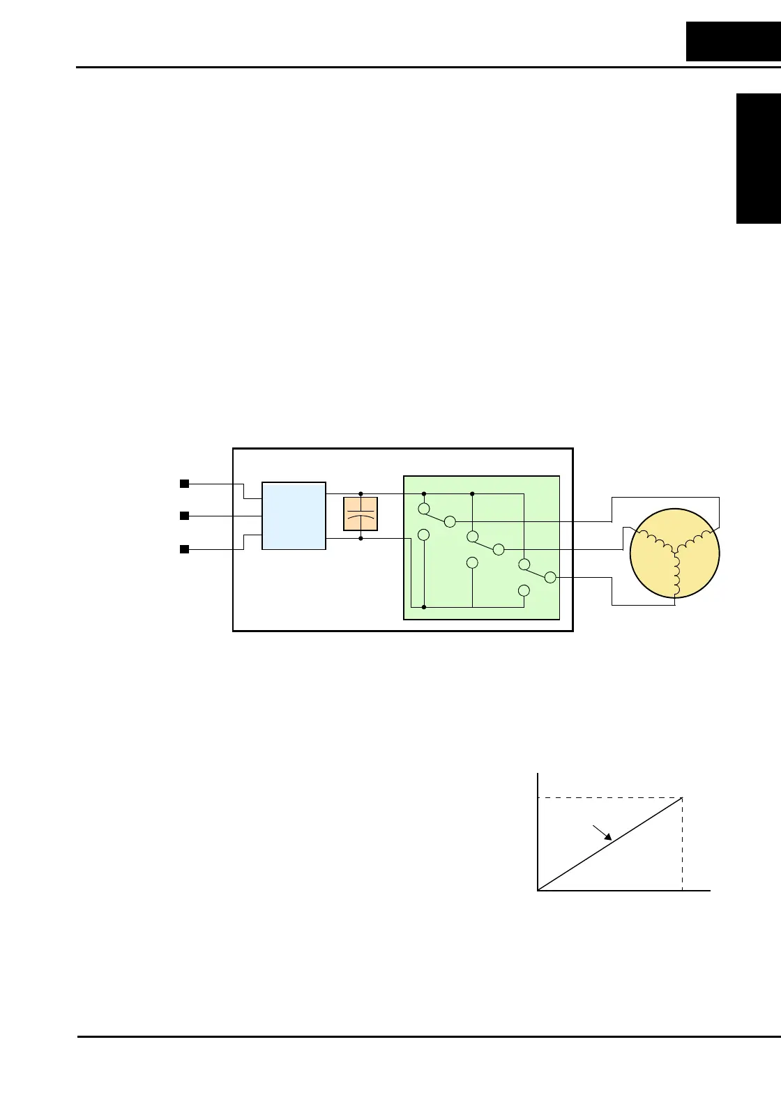 shows how the variable-frequency drive employs an internal inverter. The drive first converts