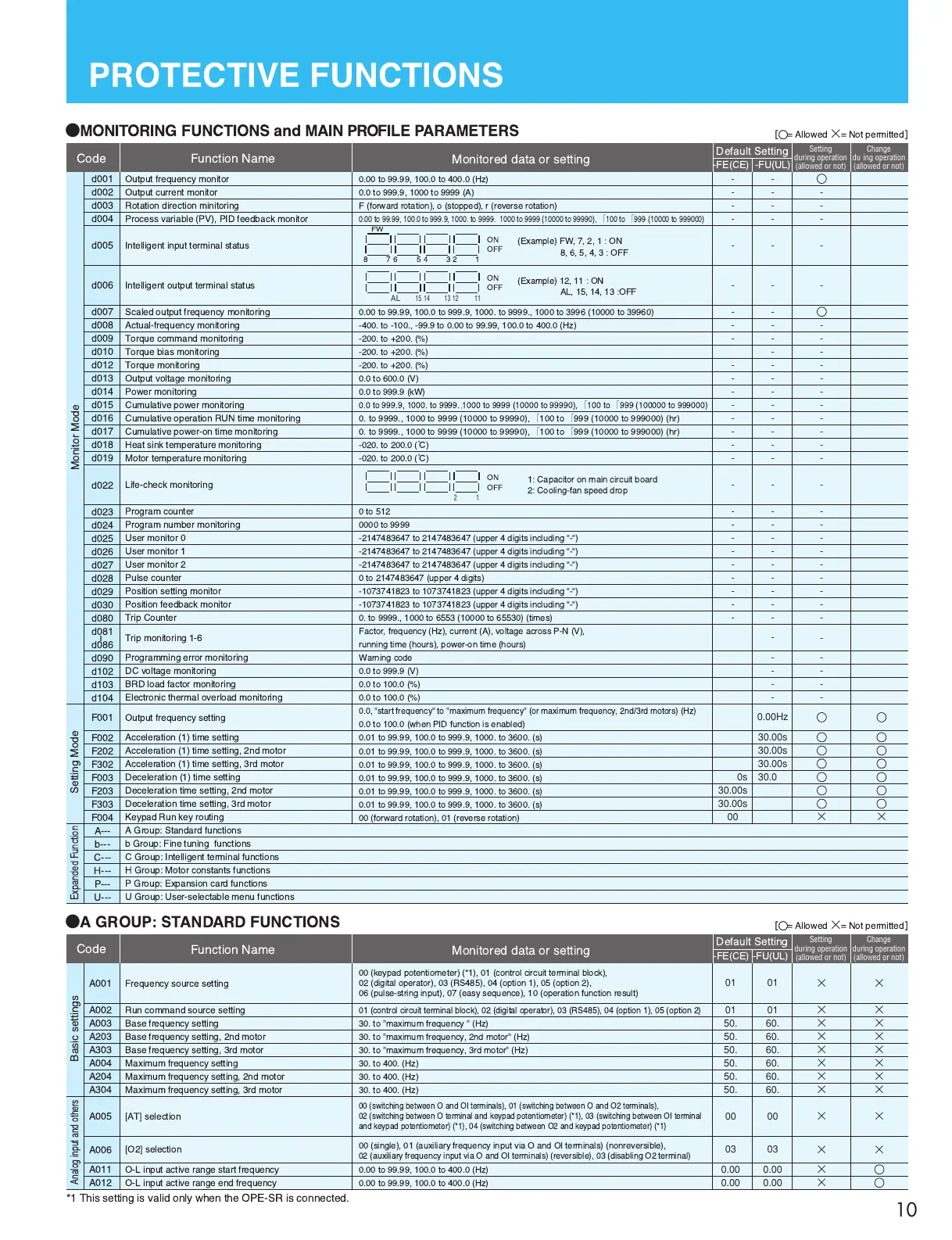 0.0, "start frequency" to "maximum frequency" (or maximum frequency, 2nd/3rd motors) (Hz)