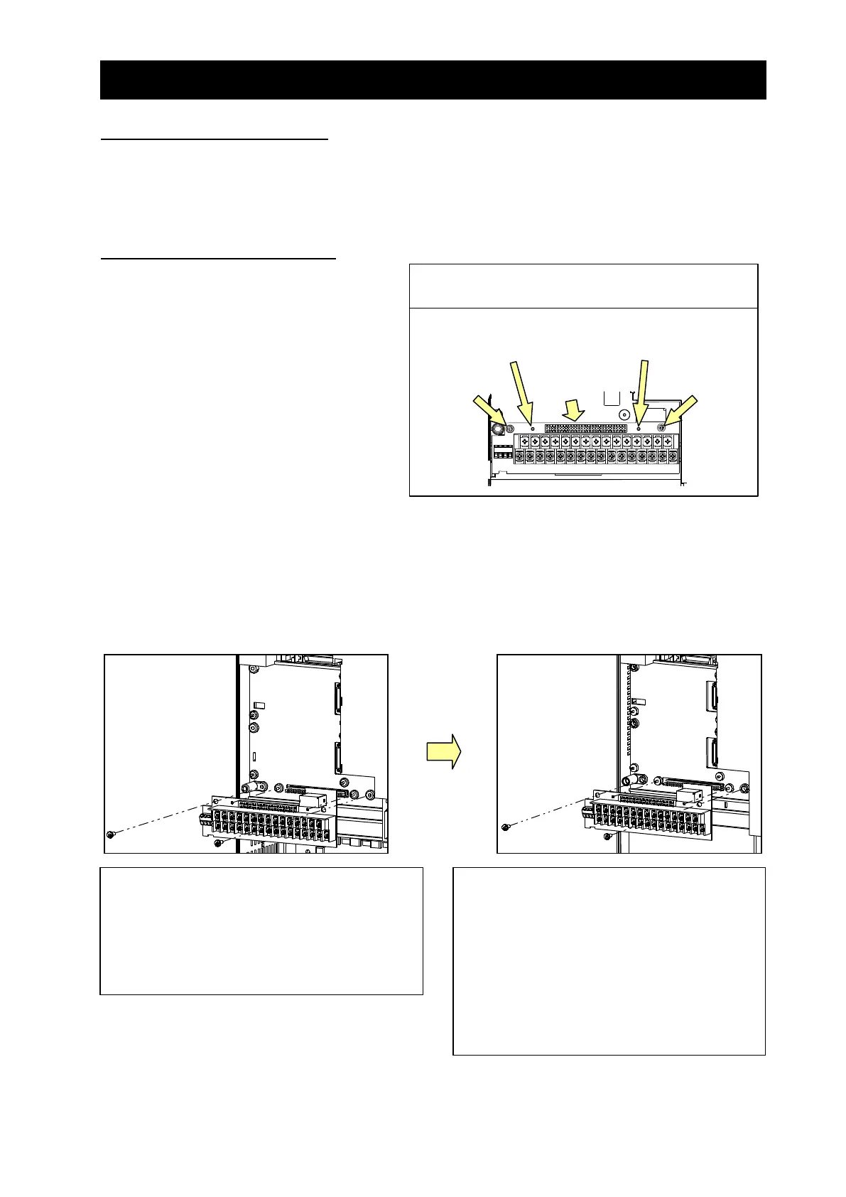 Use care to prevent the control circuit terminal block board from twisting when removing or mounting it.