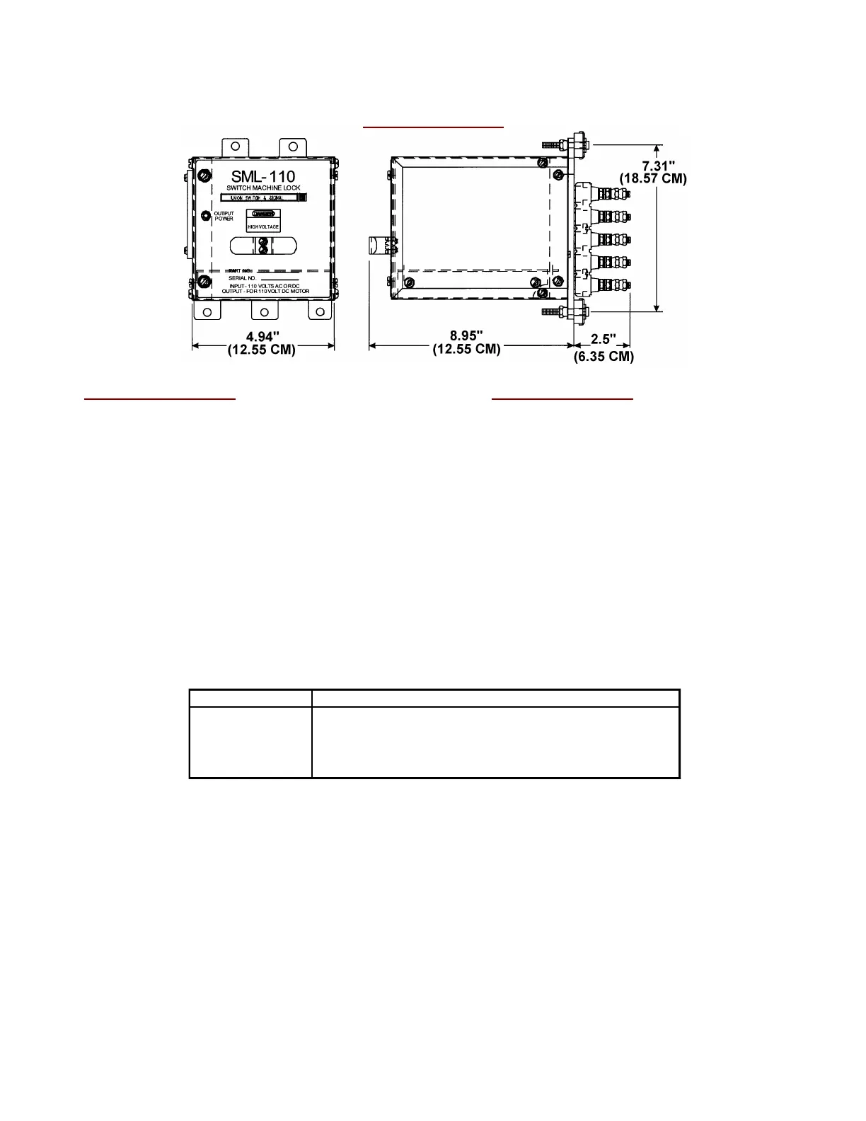 Refer to tabulation for SML-110 ordering
