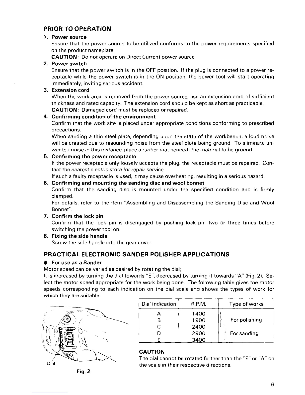 Hitachi SP18V - Prior to Operation; Power Source Check; Power Switch Check; Extension Cord Use