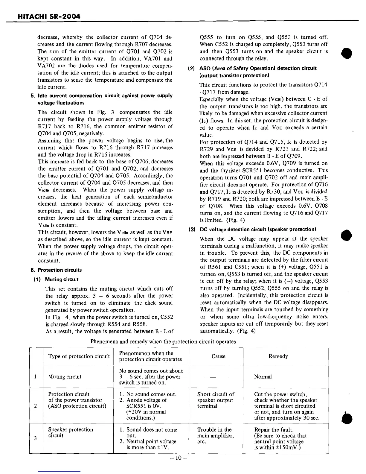 1 Muting circuit 3 - 6 sec. after the power Normal
