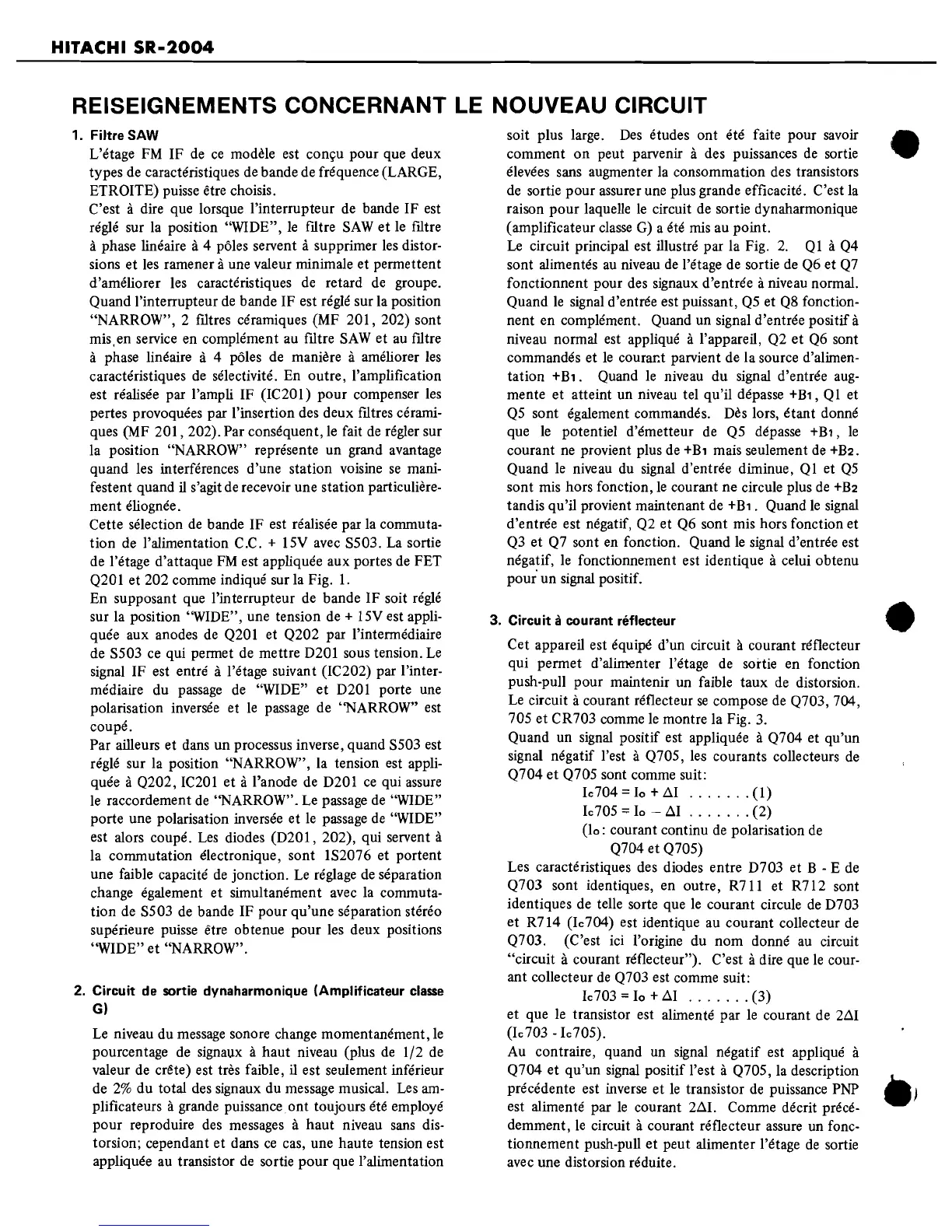 Cet appareil est equipe d'un circuit acourant retlecteur