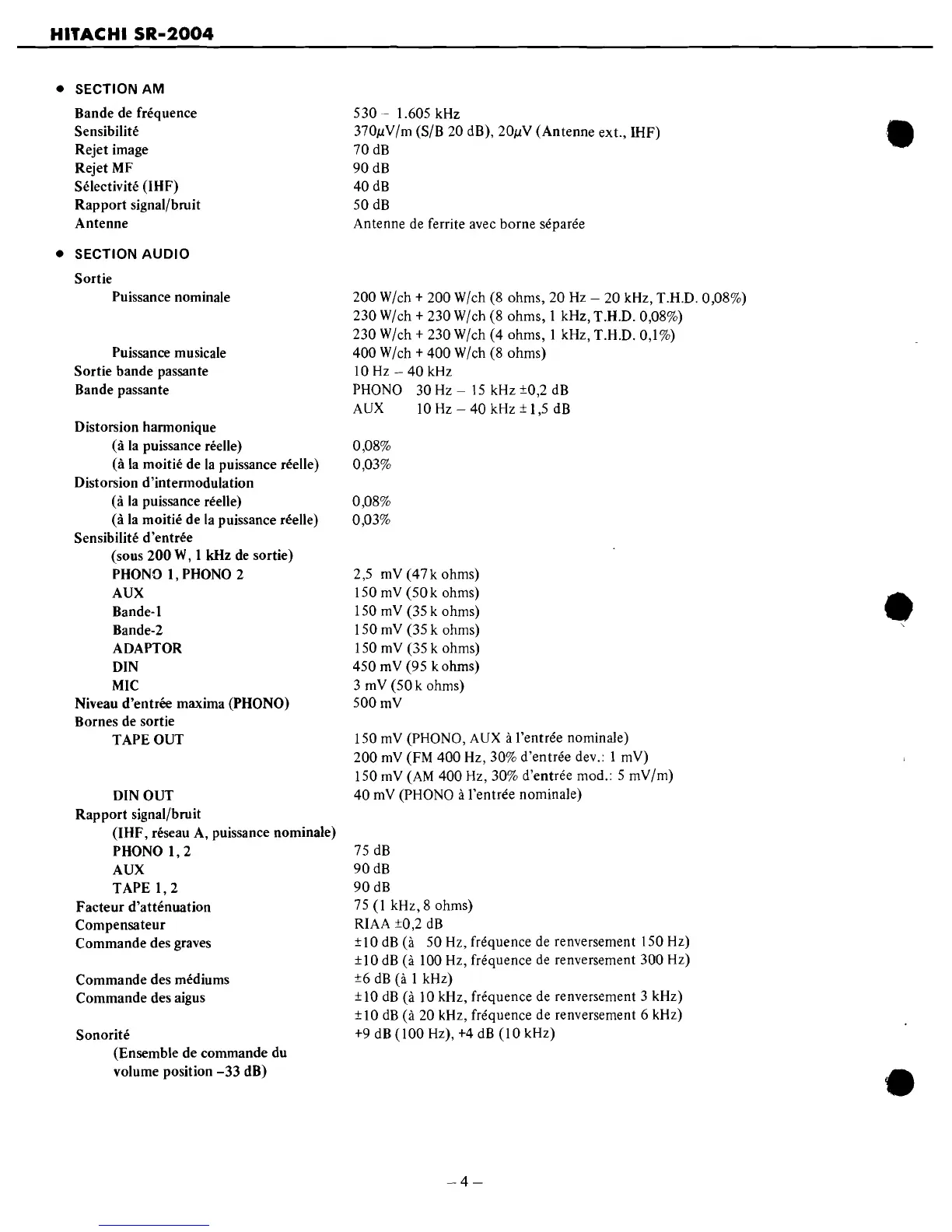 kHz, T.H.D. 0,08%)