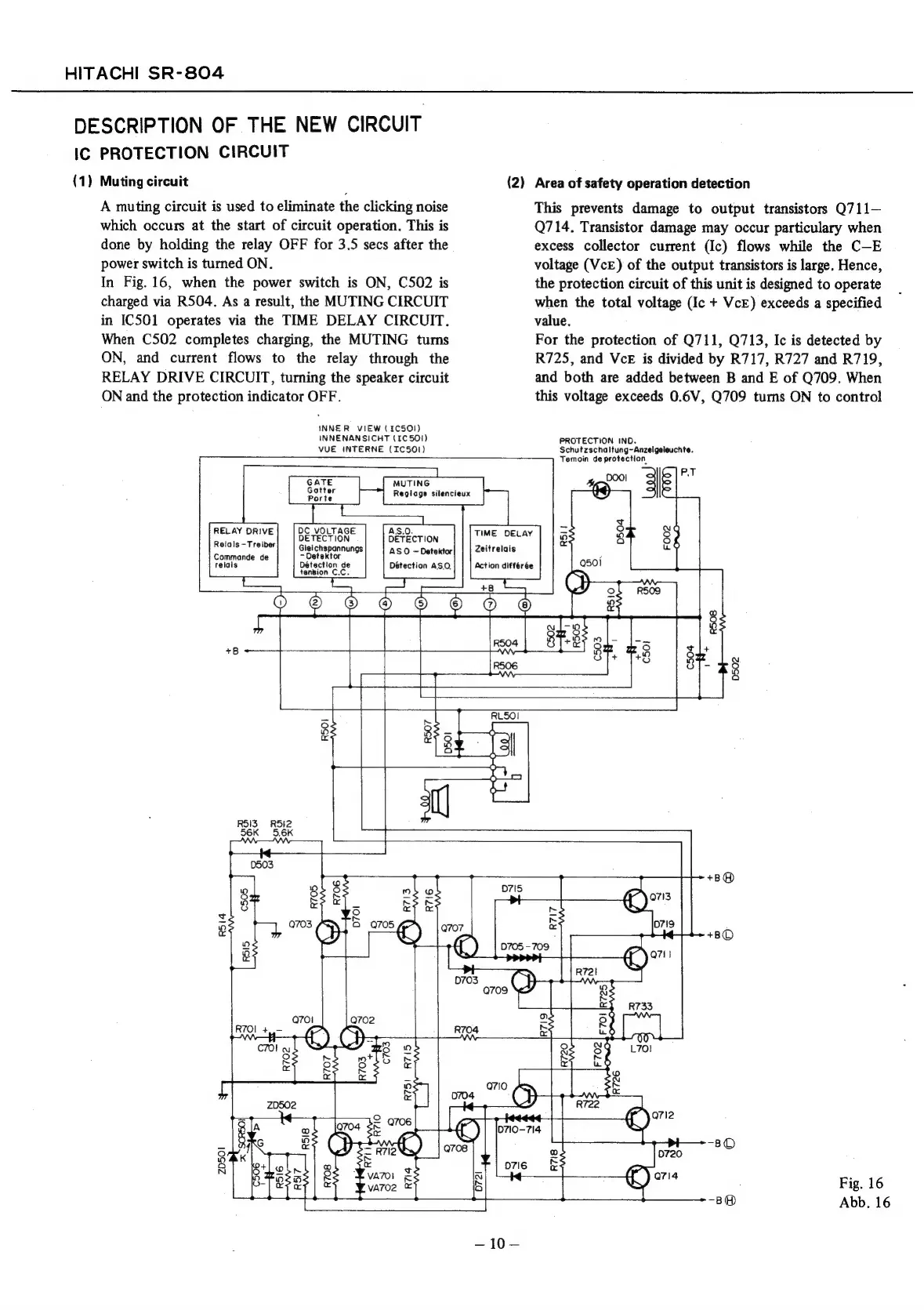 Hitachi SR-804 - DESCRIPTION OF THE NEW CIRCUIT; Muting Circuit; Area of Safety Operation Detection