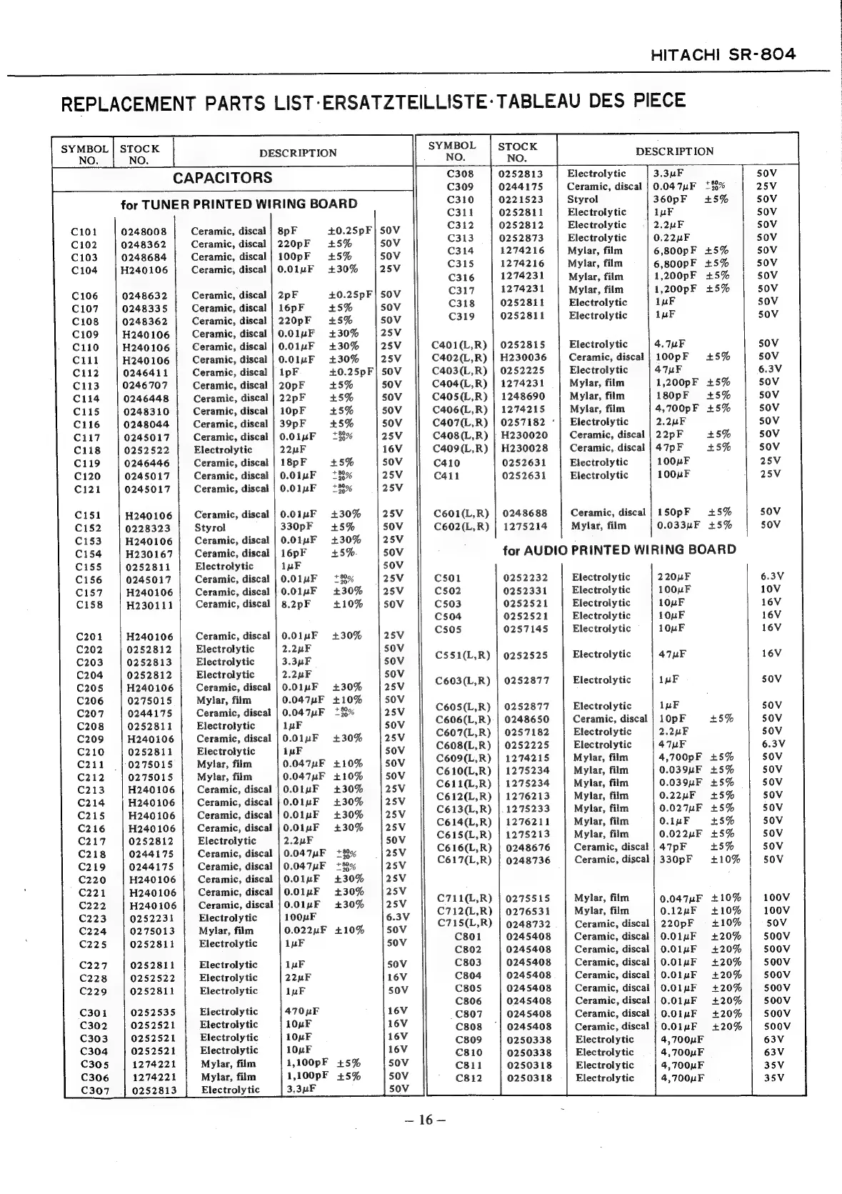 Hitachi SR-804 - REPLACEMENT PARTS LIST