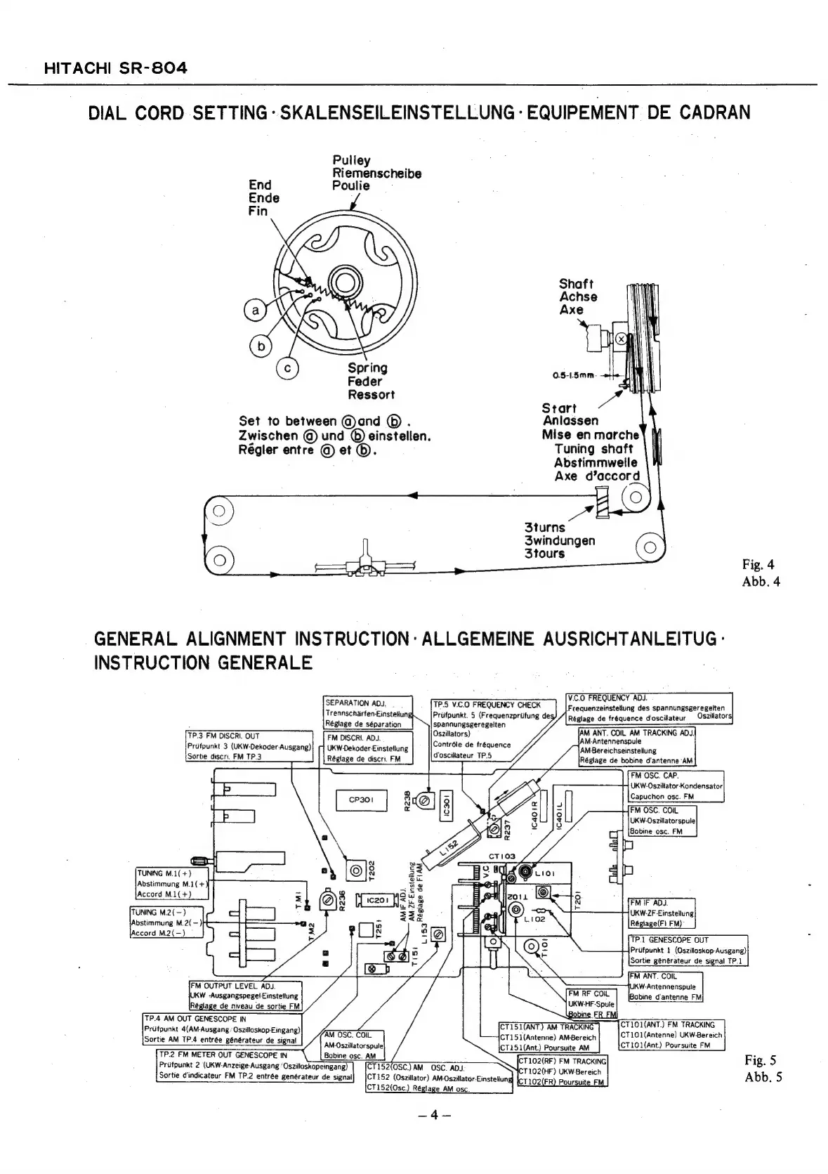 Hitachi SR-804 - DIAL CORD SETTING; GENERAL ALIGNMENT INSTRUCTION