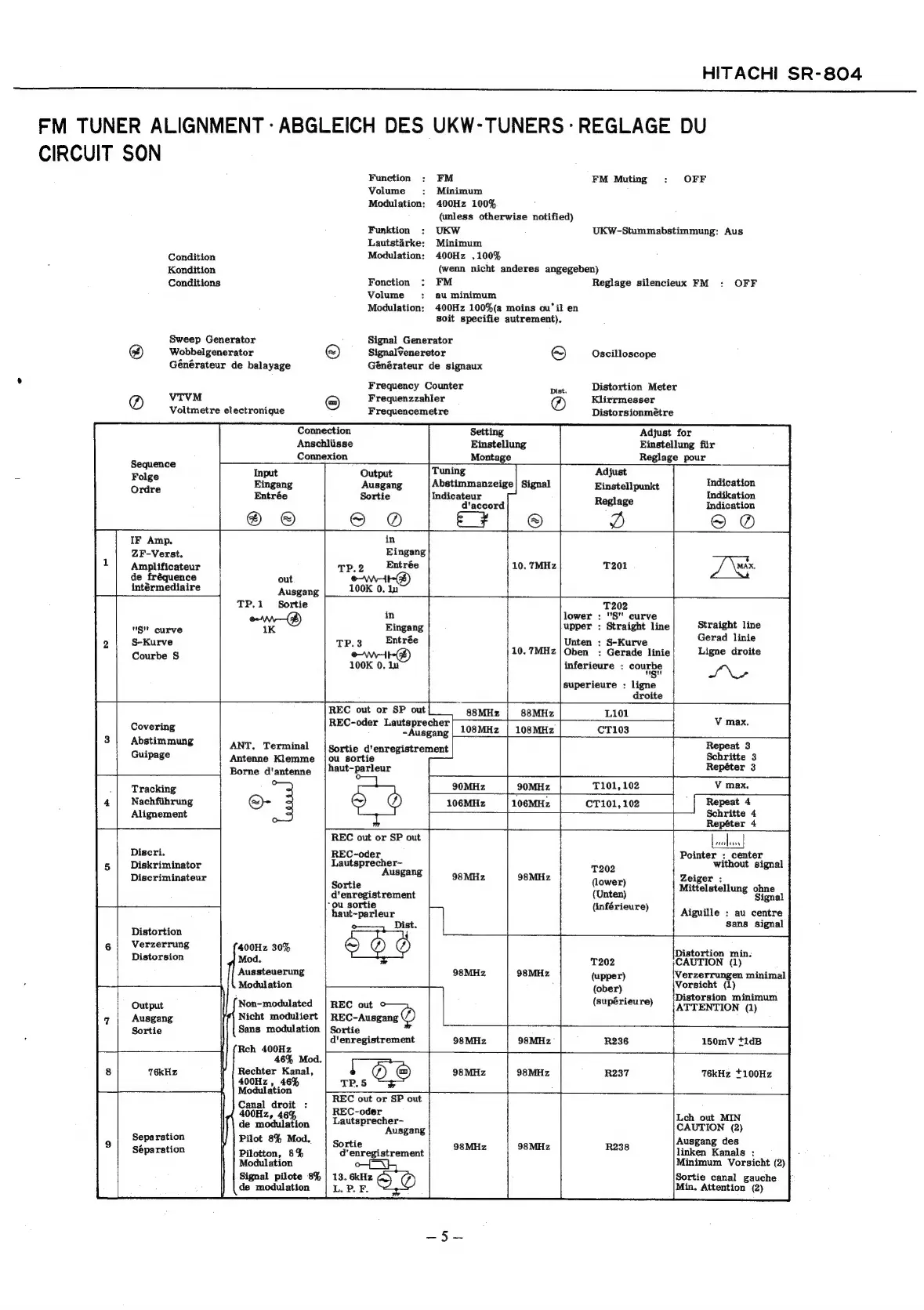 Hitachi SR-804 - FM TUNER ALIGNMENT