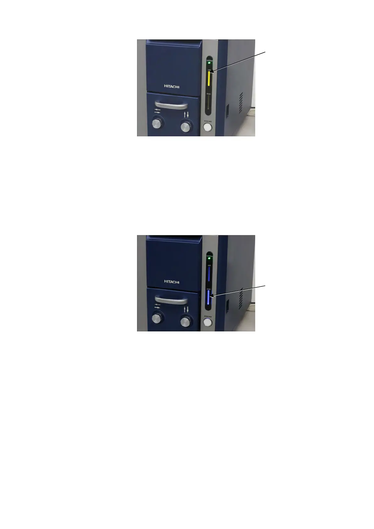 yellow. In this case, push the EVAC/AIR switch to evacuate the specimen chamber. After