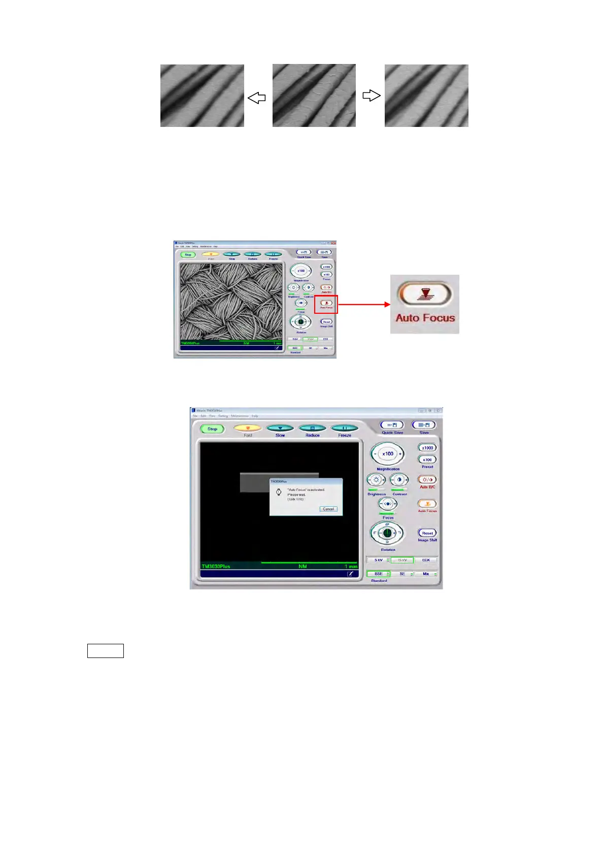 : The accuracy of Auto-focusing can be affected by the specimen surface structures.