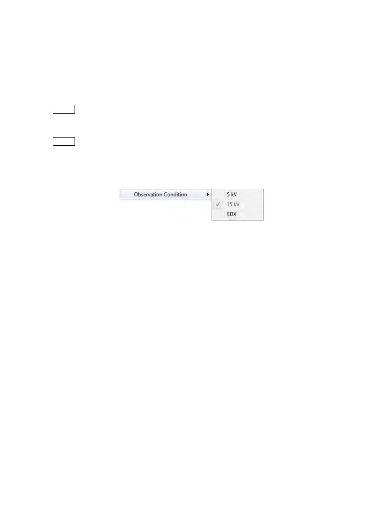 The observation condition can be selected from [5 kV], [15 kV] and [EDX] in the
