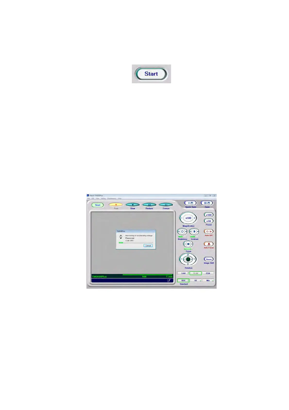 the [Start] button, and a high voltage starts to be applied in order to irradiate a specimen