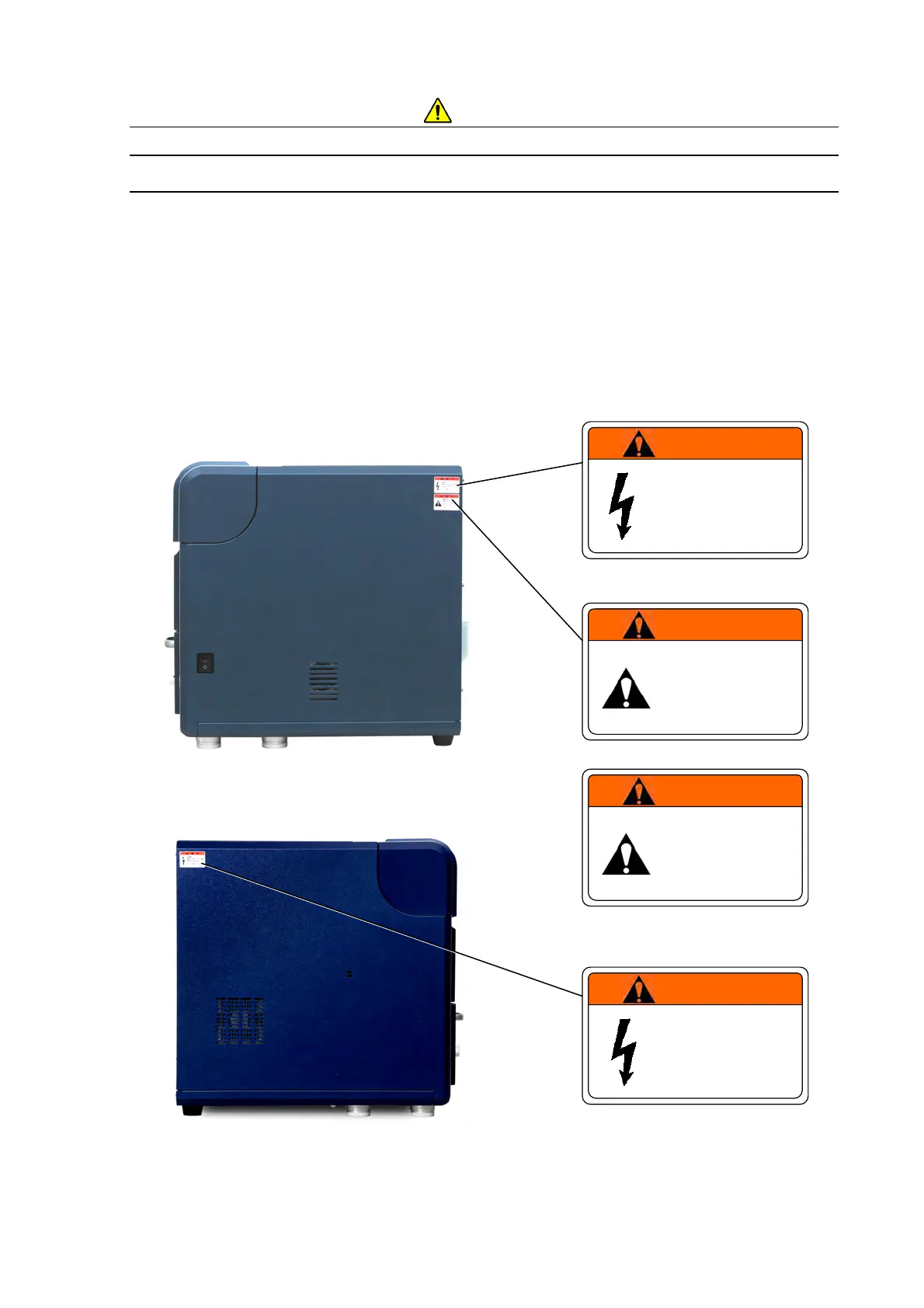 If the warning and caution labels become faint due to aging, contact the Service Department