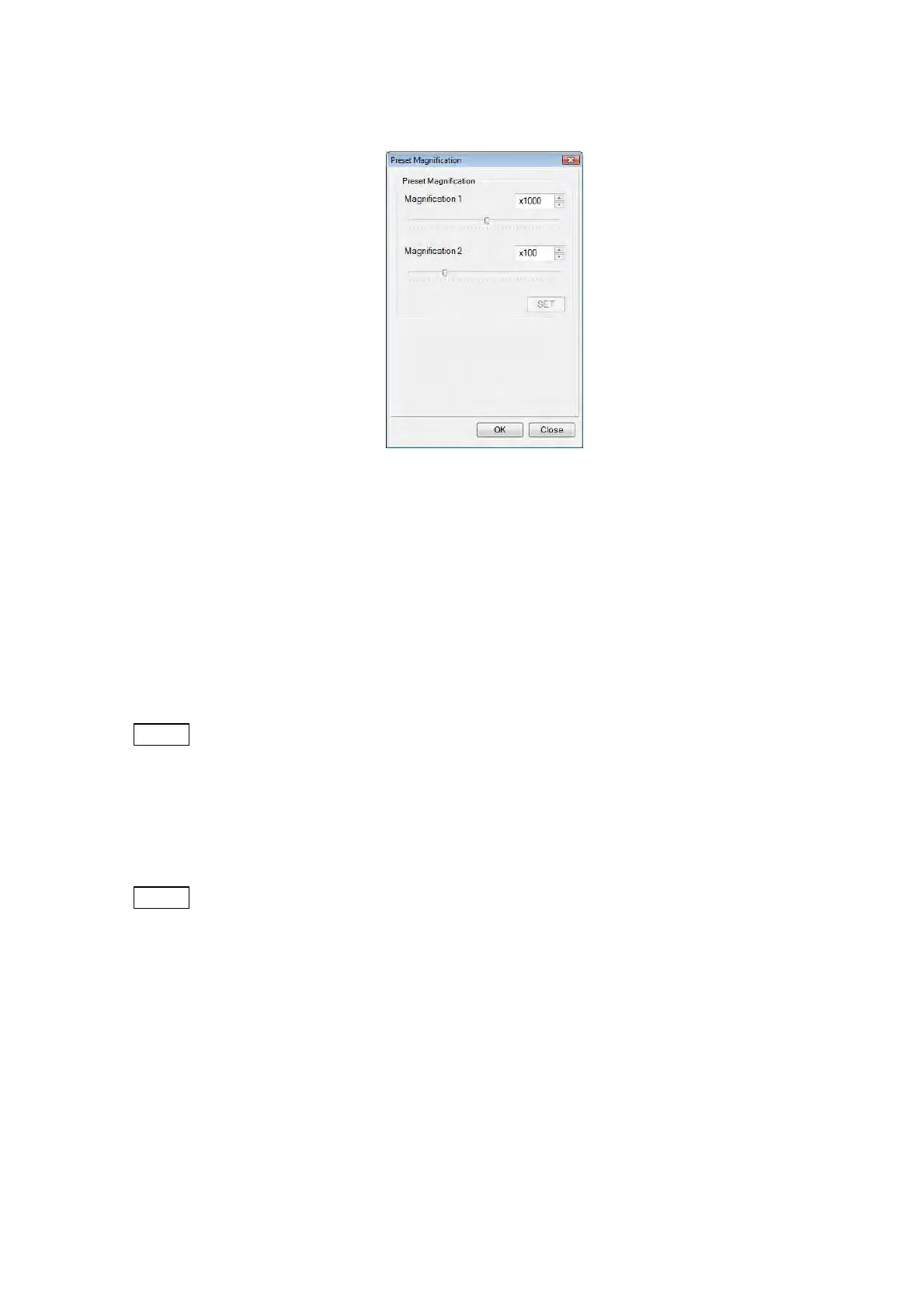slider or the up/down button on the Preset Magnification window. Click the [SET] or [OK] button