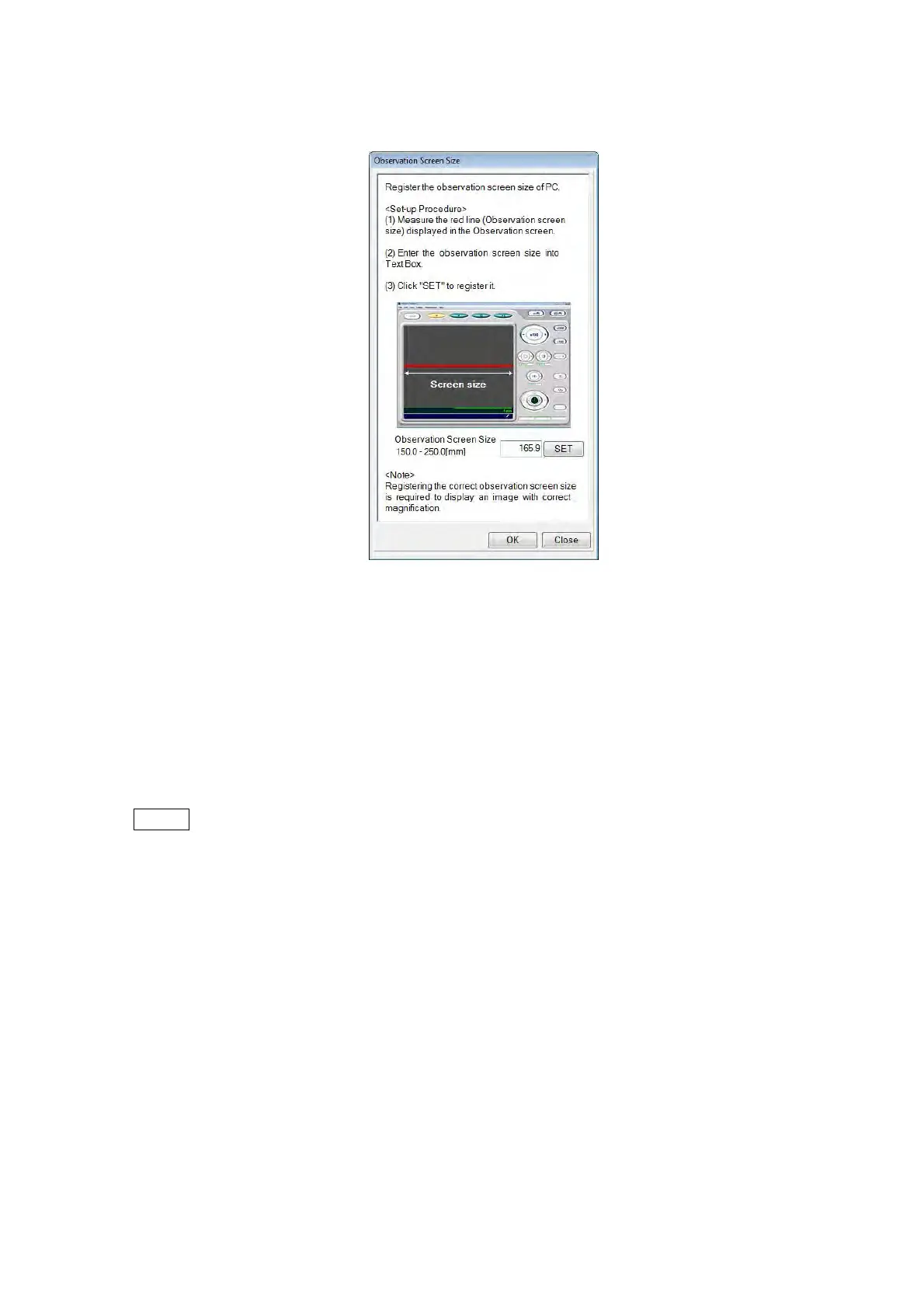Screen Size] box. Click the [SET] or [OK] button to register the screen size.