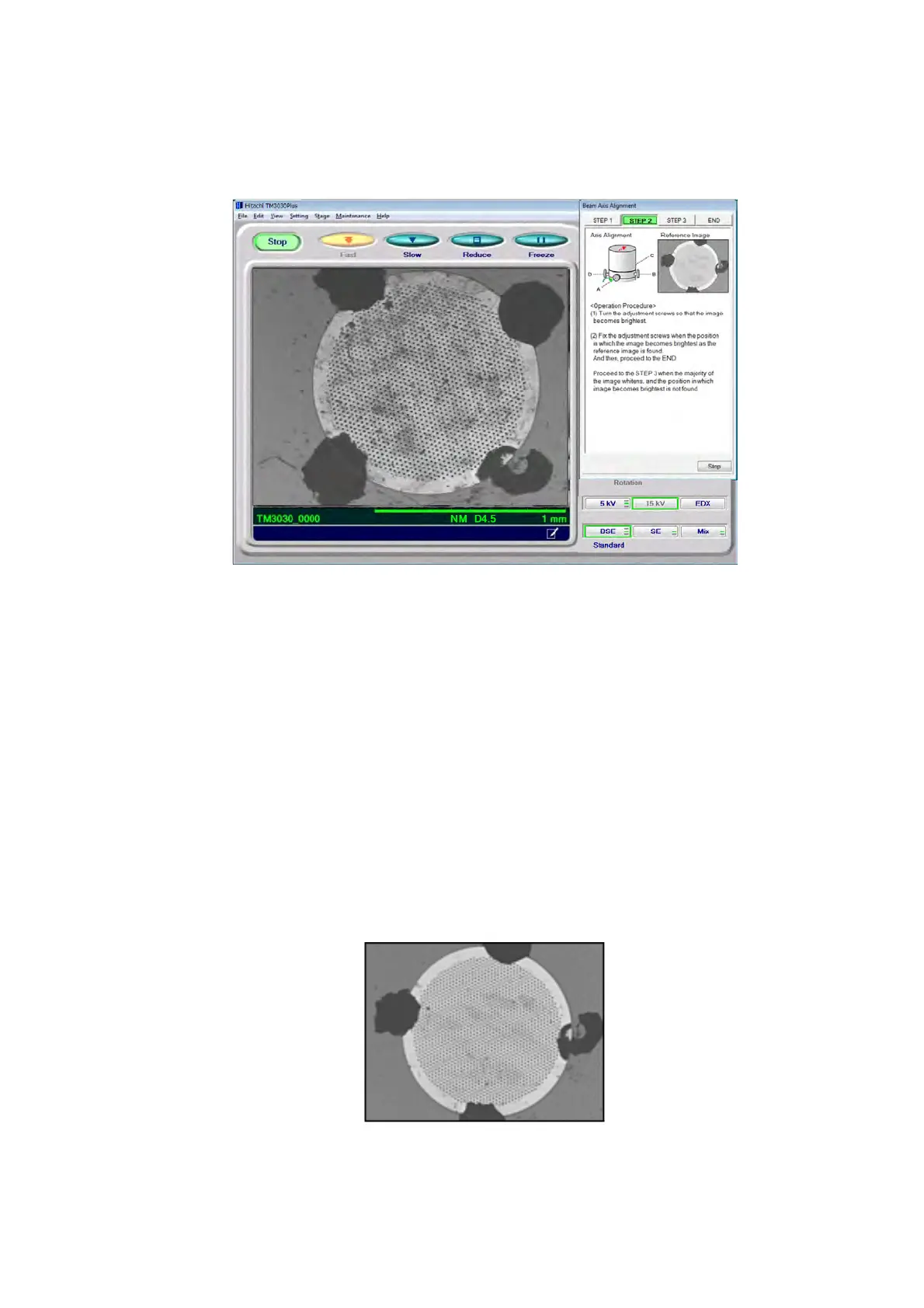 5a. In a manner similar to STEP 1, adjust the beam axis so that the image on the