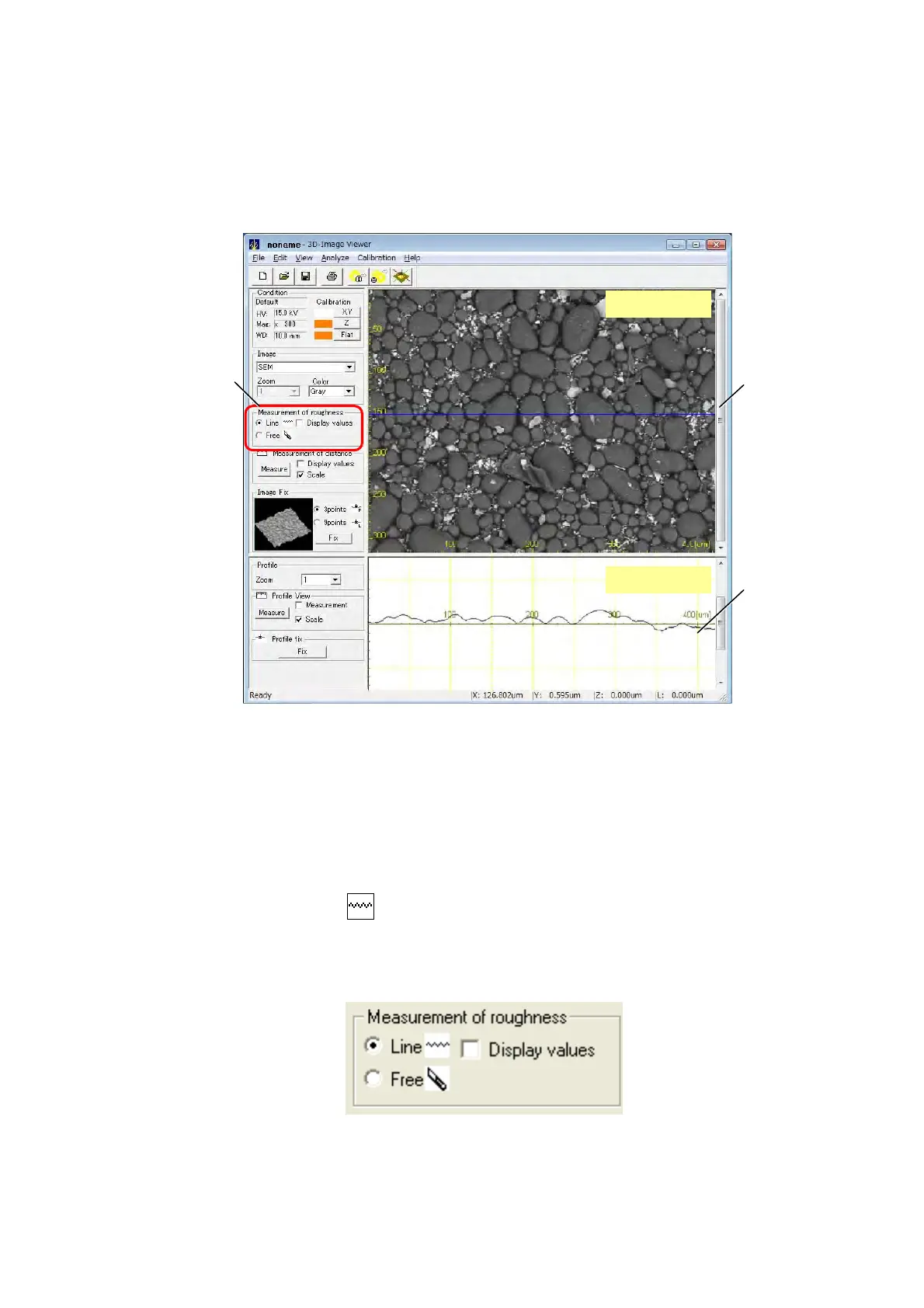 [Line] from the Measurement of roughness, and moving the mouse cursor on the image view,