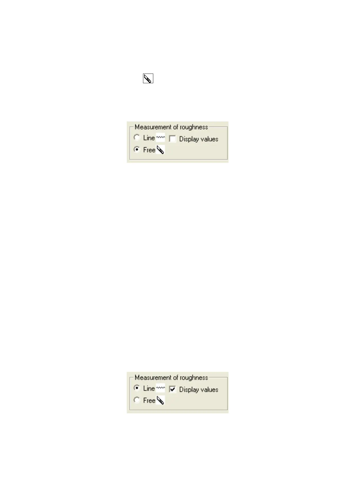 view is displayed in the Measurement of roughness dialog. When selecting the other