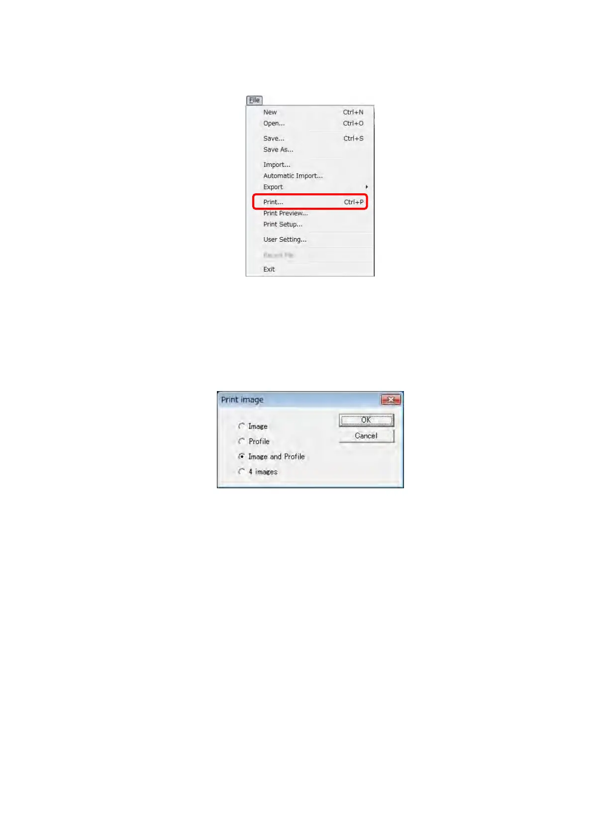 Print image dialog is displayed. Select one of [Image], [Profile], [Image and Profile], and [4