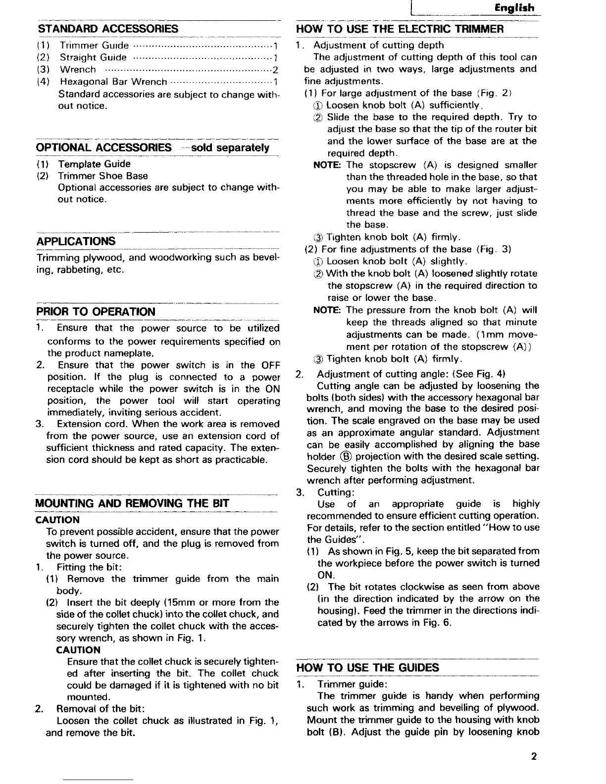 Hitachi TR-6 - Standard Accessories; Optional Accessories; Applications; Prior to Operation