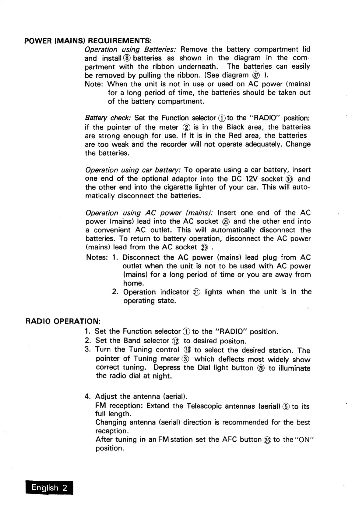 Hitachi TRK-8080E - Power and Operation; Power (Mains) Requirements; Radio Operation Guide