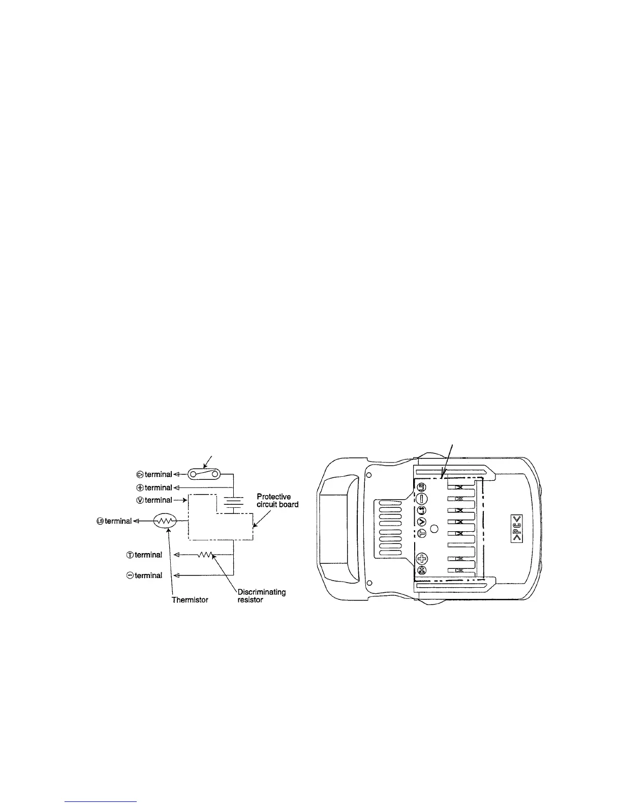 • The thermal protector incorporated in each 14.4 V/18 V battery interrupts the
