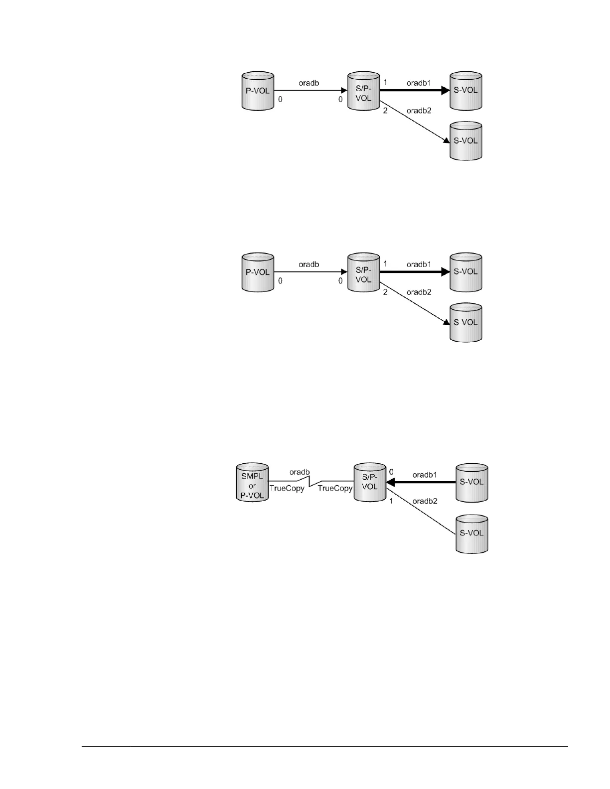 (oradb1) is performed when the S/P-VOL (oradb or oradb2) is in any other