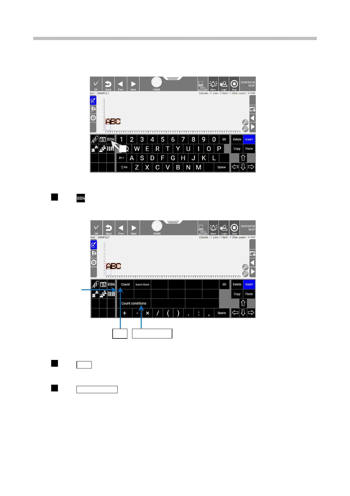 Count keyboard display screen (printing count characters)