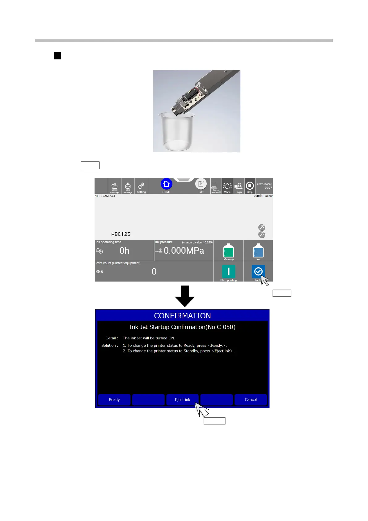 ●Cannot eject ink when the print head is inserted into the Print head inlet of the Cleaning station.