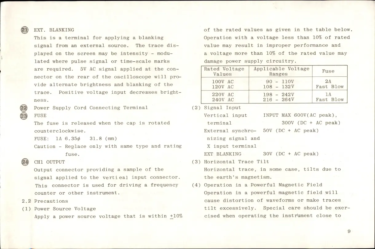 Hitachi V-151F - Operational Precautions; Power Source Voltage Requirements; Signal Input Limits; Horizontal Trace Tilt