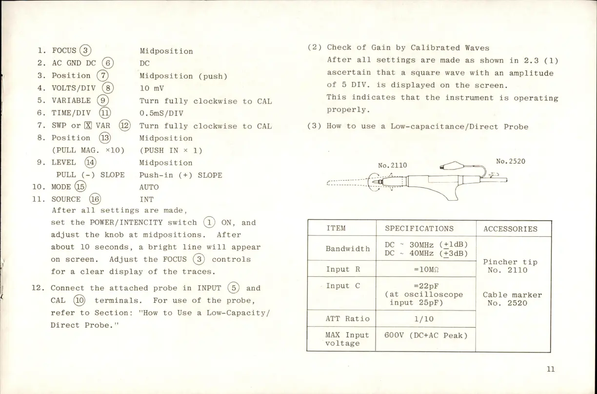 Hitachi V-151F - Gain Check with Calibrated Waves; Using Low-Capacitance;Direct Probes
