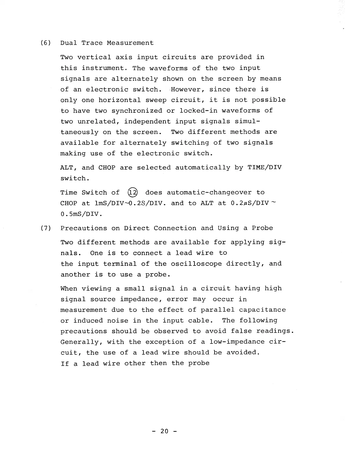 Hitachi V-152B - Dual Trace Measurement; Precautions on Direct Connectino and Using a Probe