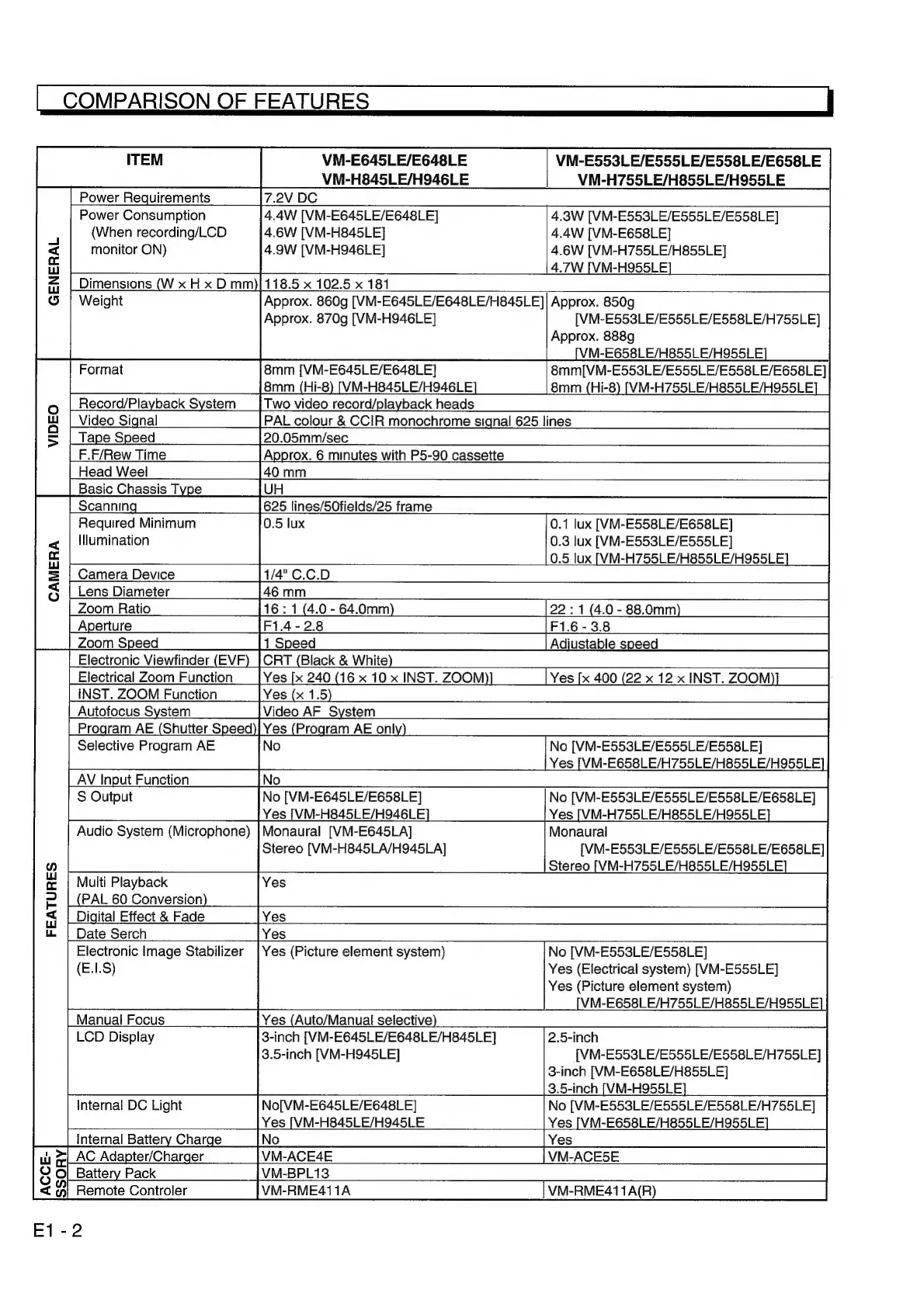 VM-E553LE/E555LE/E558LE/E658LE