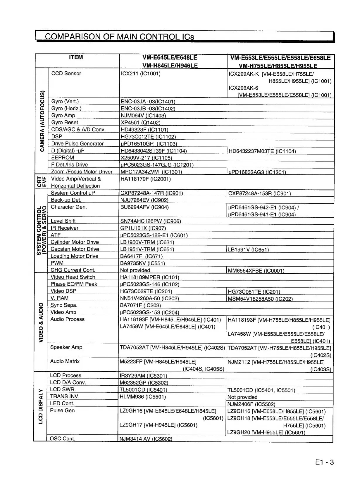 Hitachi VIV-E553LE - COMPARISON of MAIN CONTROL Ics