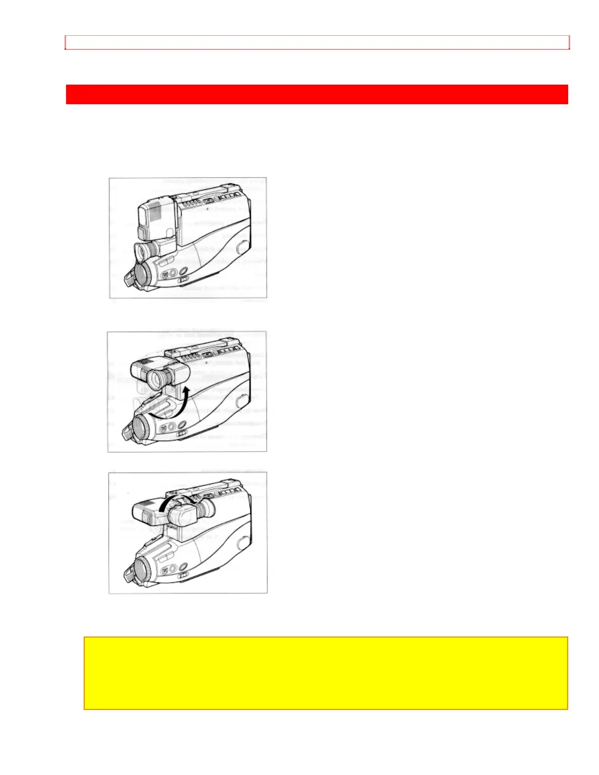 • Do not force the viewfinder to rotate completely around. This will damage the viewfinder