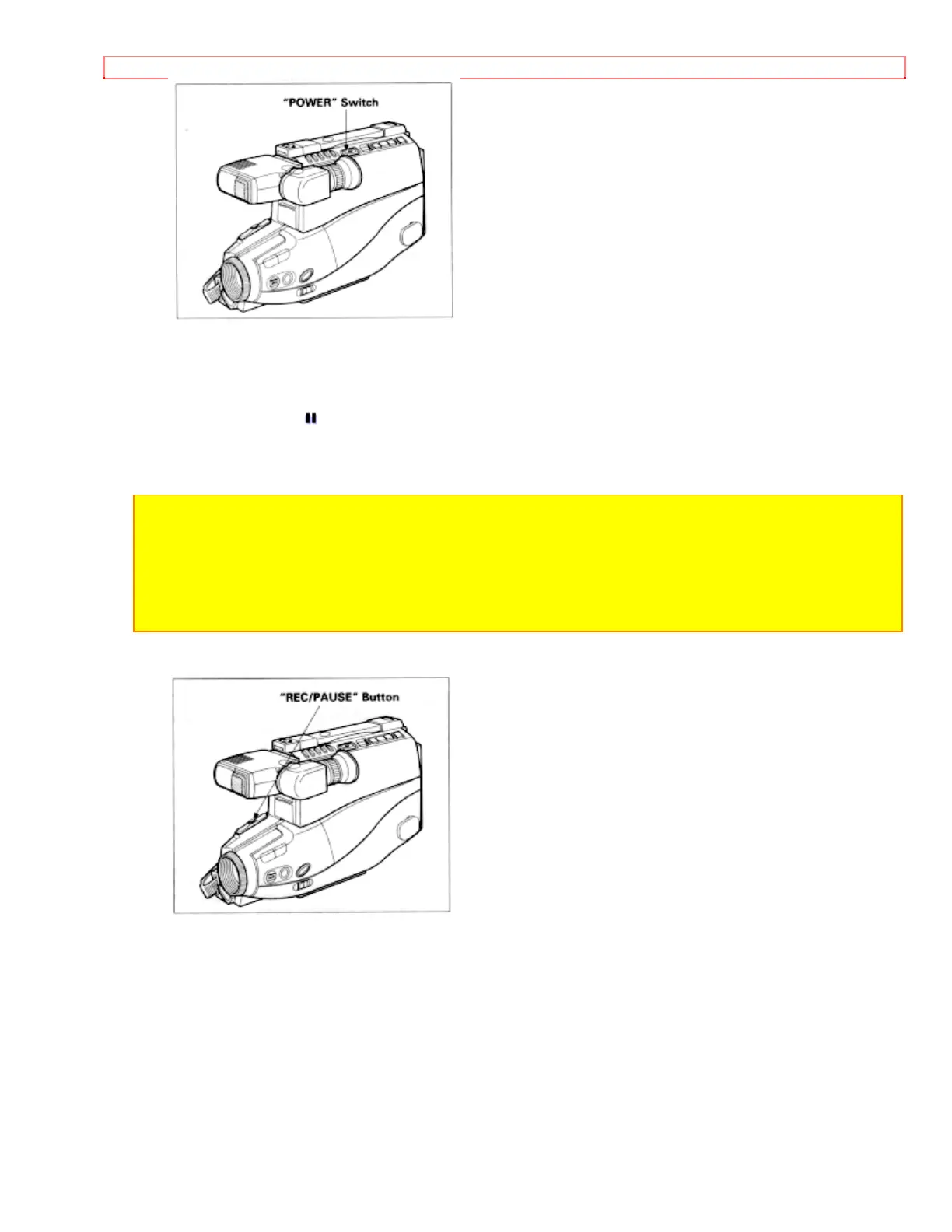 • If the record/pause mode continues for more than 5 minutes, the camera/recorder's power