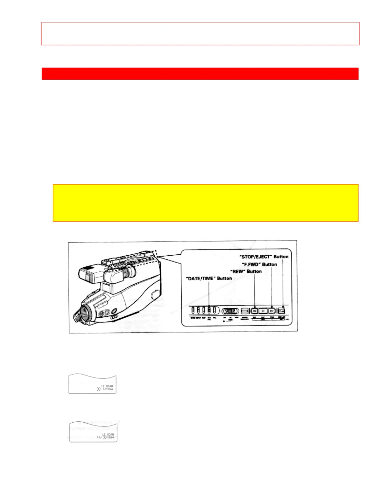 adaptor/charger to the camera/recorder for 24 hours. Make sure that the current time is