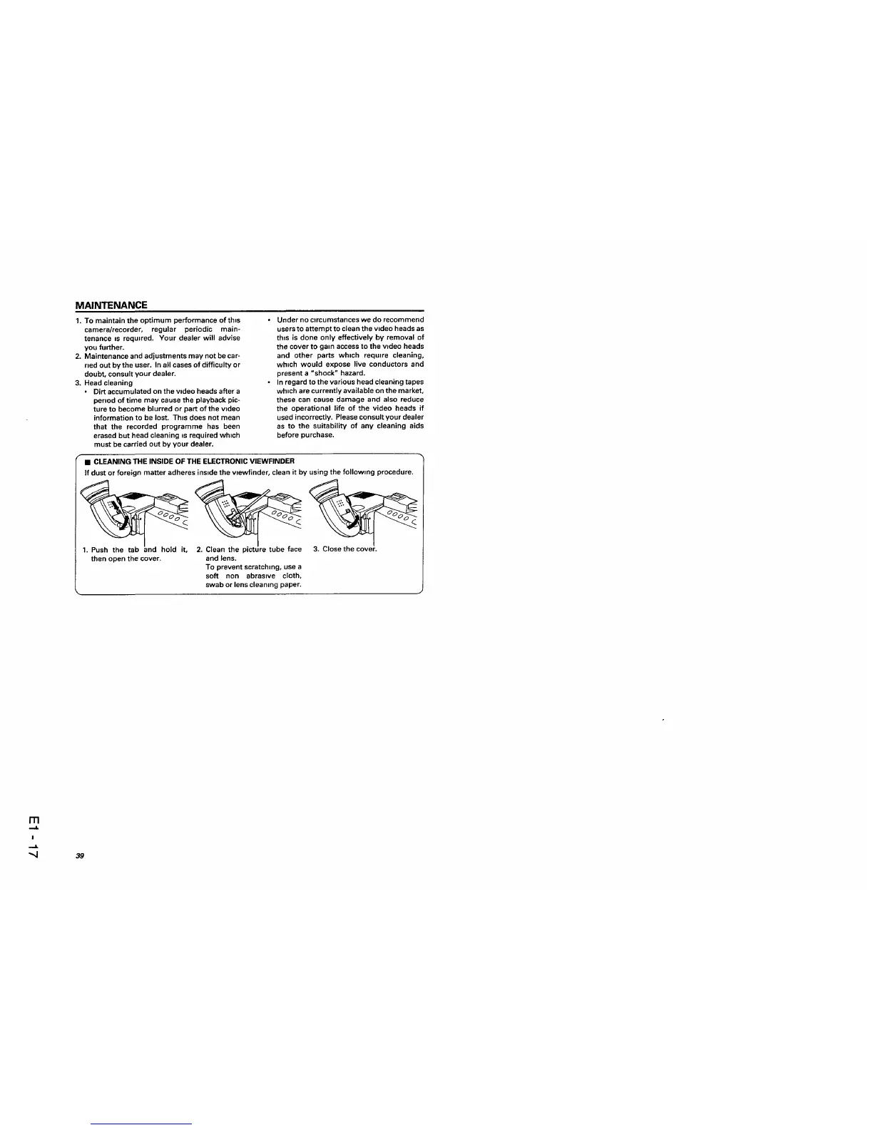 Hitachi VM-7380E - CHAPTER 3 ELECTRICAL ADJUSTMENT; 12. MAINTENANCE; CLEANING THE INSIDE OF THE ELECTRONIC VIEWFINDER