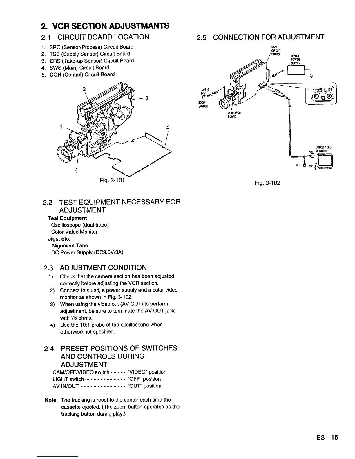 Hitachi VM-7380E - CHAPTER 3 ELECTRICAL ADJUSTMENT; 2. VCR SECTION ADJUSTMENTS; 2.1 CIRCUIT BOARD LOCATION; 2.2 TEST EQUIPMENT NECESSARY FOR ADJUSTMENT
