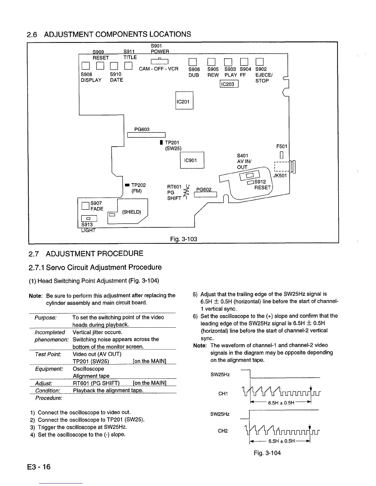 Hitachi VM-7380E - CHAPTER 3 ELECTRICAL ADJUSTMENT; 2.7 ADJUSTMENT PROCEDURE; (1) Head Switching Point Adjustment; (2) X-Value Adjustment