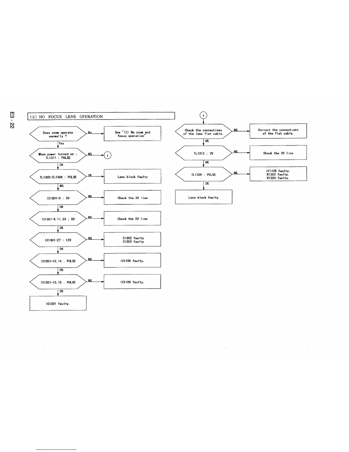 Hitachi VM-7380E - CHAPTER 3 ELECTRICAL ADJUSTMENT; (2) NO FOCUS LENS OPERATION