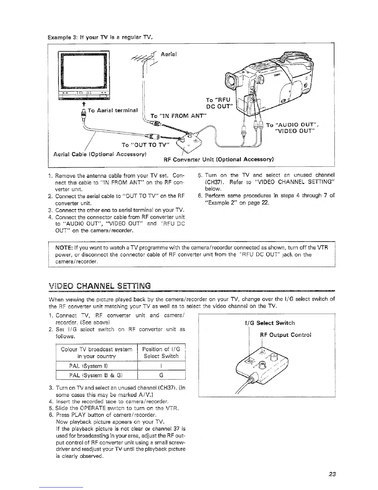 Hitachi VM-C1E - Video Channel Setting; If Your TV Is a Regular TV