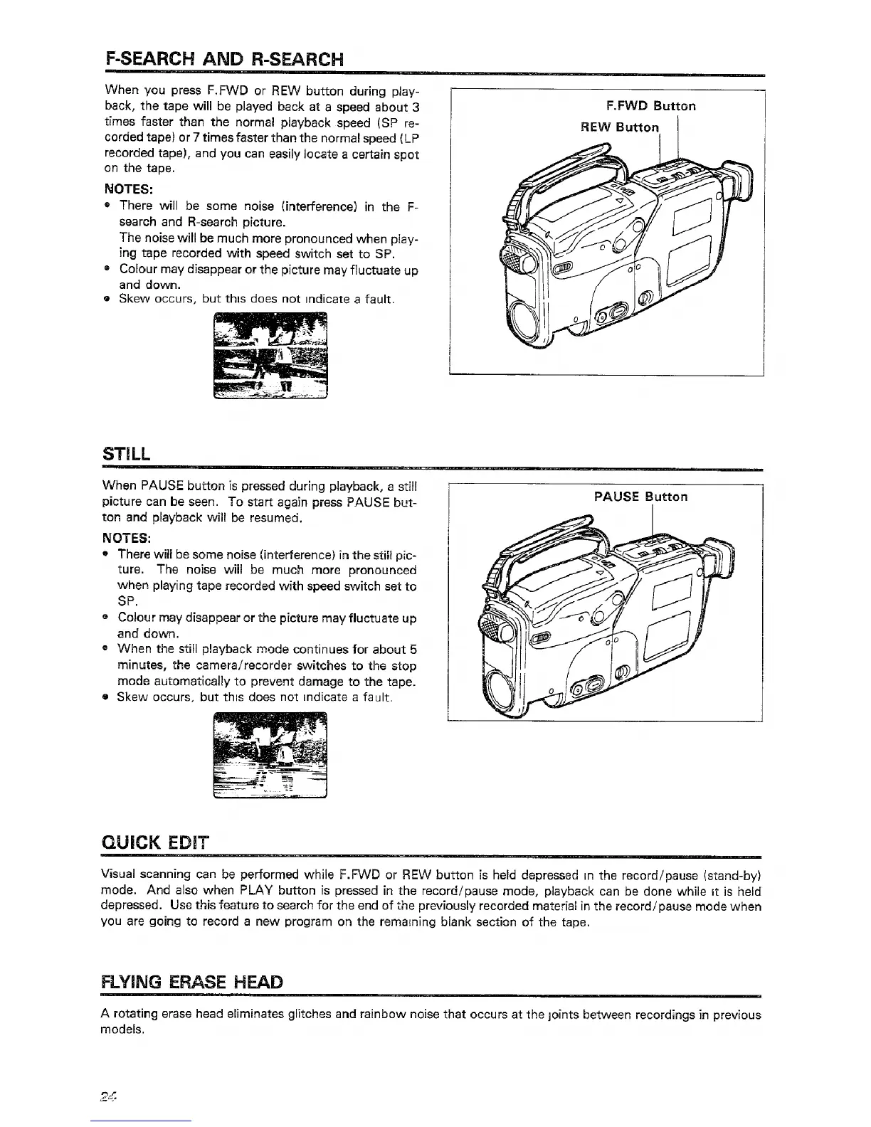 Hitachi VM-C1E - F-Search and R-Search; Still; Quick Edit; Flying Erase Head
