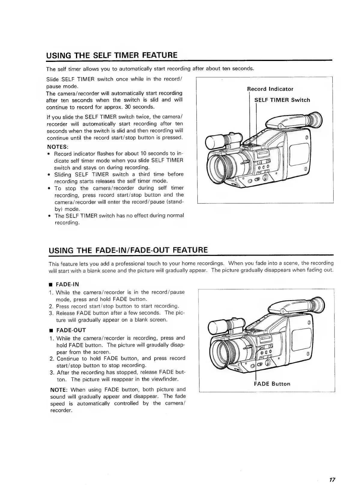 Hitachi VM-C52E - Using the Self Timer Feature; Using the Fade-In;Fade-Out Feature