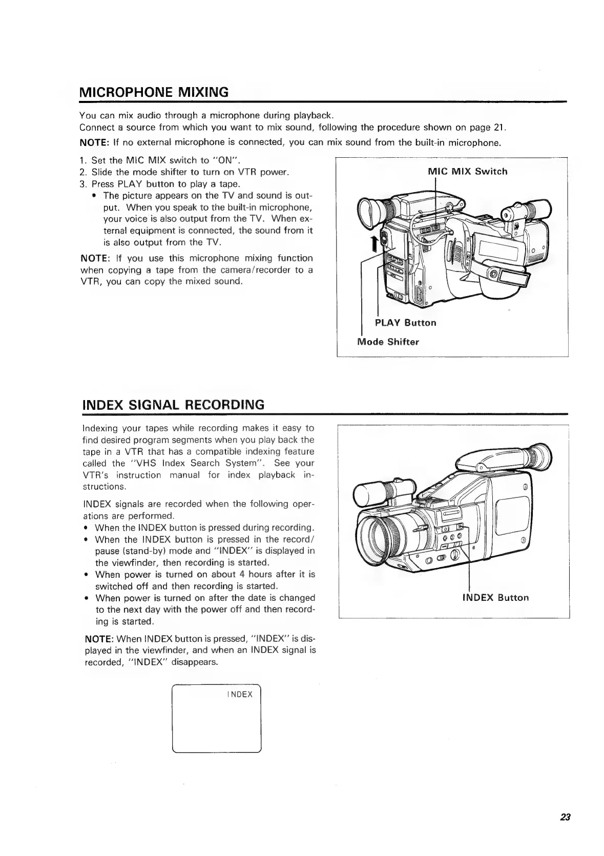Hitachi VM-C52E - Microphone Mixing; Index Signal Recording