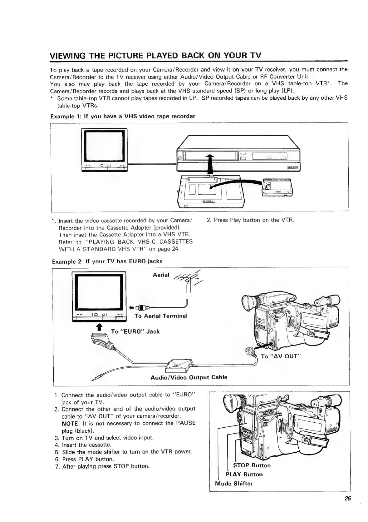 Hitachi VM-C52E - Viewing the Picture Played Back on Your TV