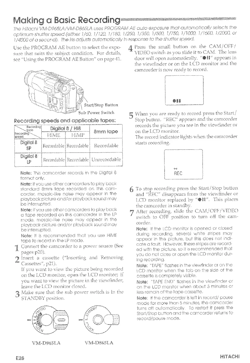 Recording speeds end epp onbie tapes: