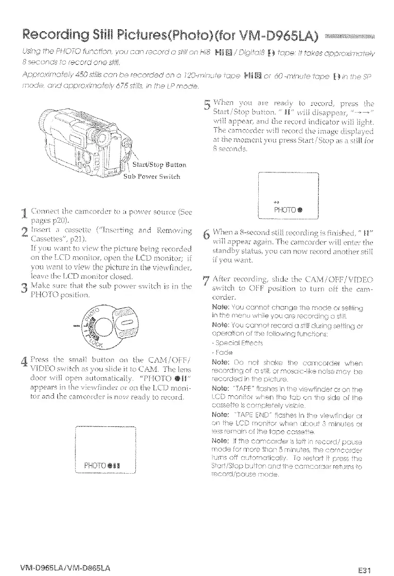Recording Stil Pictures(Photo)(for VMoD965LA)